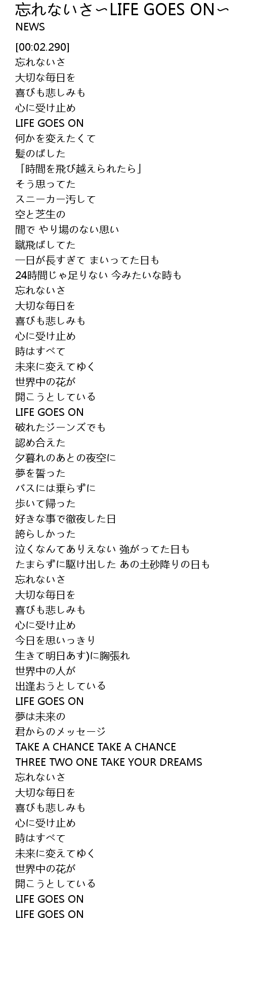 | [03:19.210] | 生きて明日あす)に胸張れ |