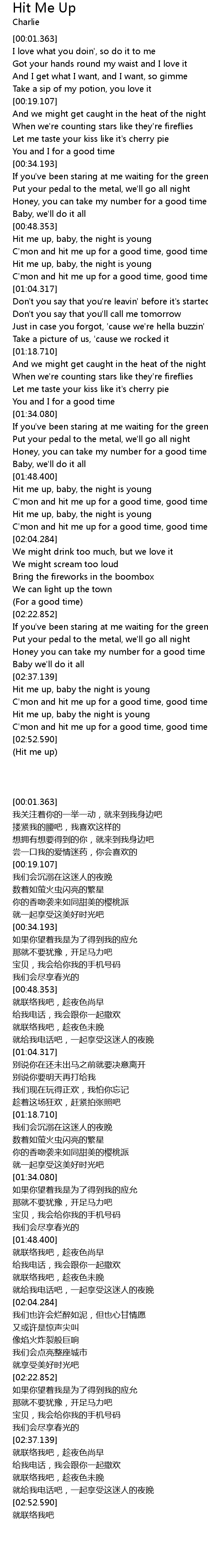| [02:45.588] | Hit me up, baby the night is young |