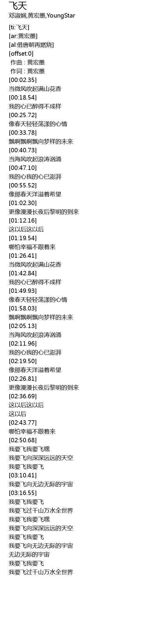 | [02:51.70] | 我要飞我要飞嘿 |