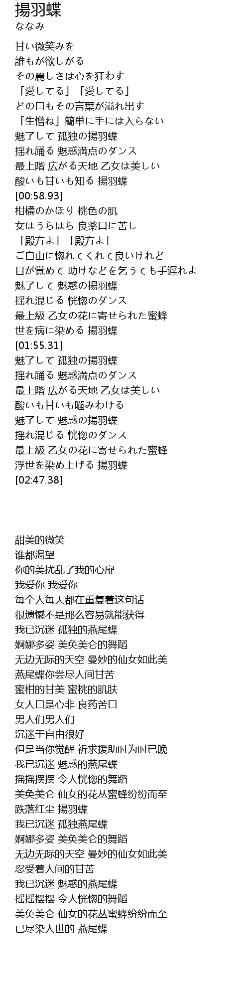 | [00:40.36] | 魅了して 孤独の揚羽蝶 |