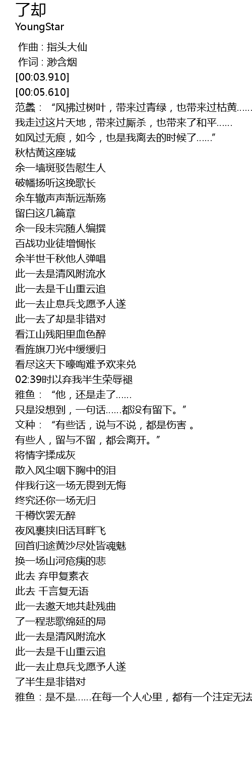 | [04:38.110] | 此一去邀天地共赴残曲 |