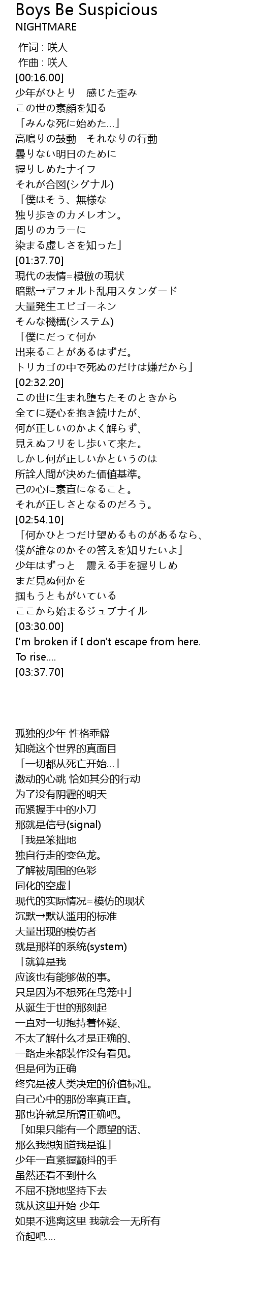 | [00:43.00] | 少年がひとり 感じた歪み |