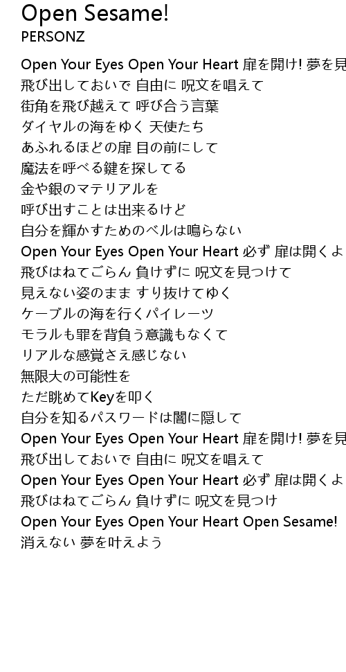 | Open Your Eyes Open Your Heart Open Sesame! | |