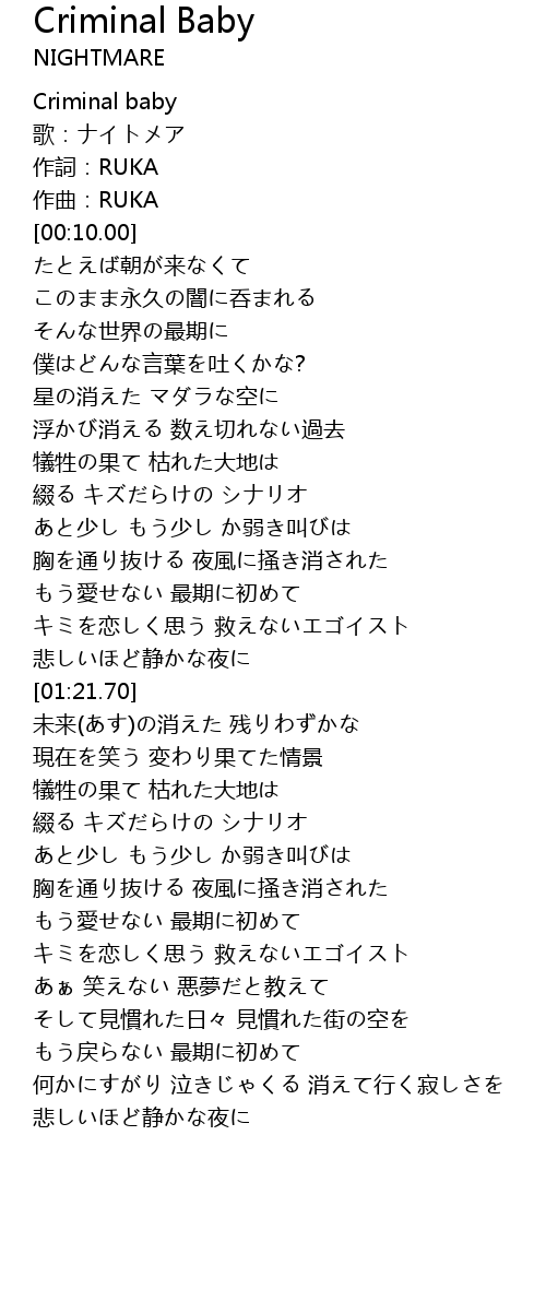 | [00:00.00] | Criminal baby |