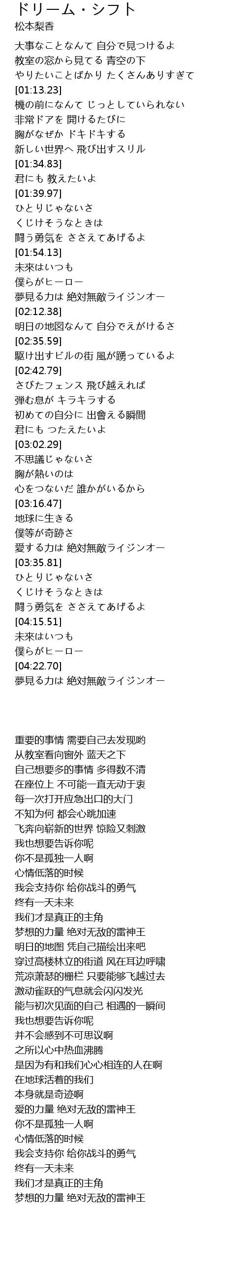 | [04:23.26] | 夢見る力は 絶対無敵ライジンオー |