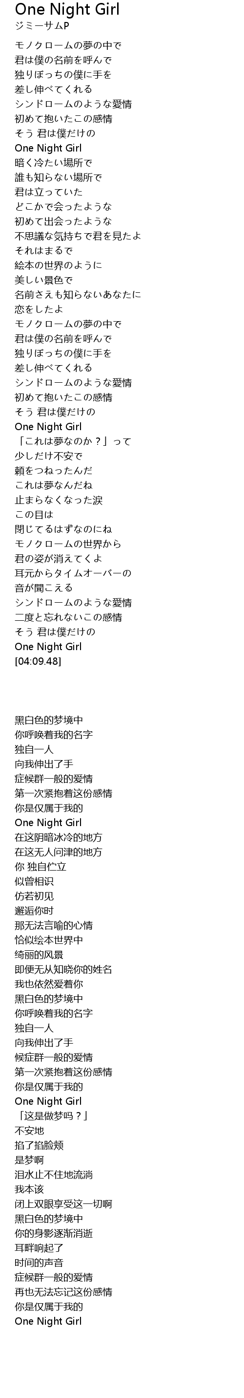 | [04:04.93] | One Night Girl |