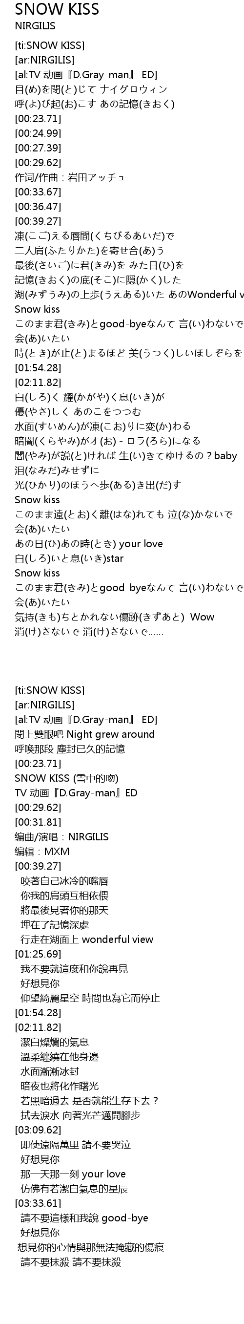 | [00:49.22] | 凍(こご)える唇間(くちびるあいだ)で |