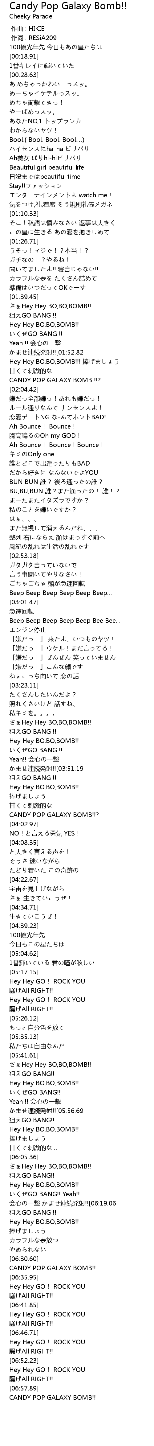 | [02:01.06] | CANDY POP GALAXY BOMB !!? |