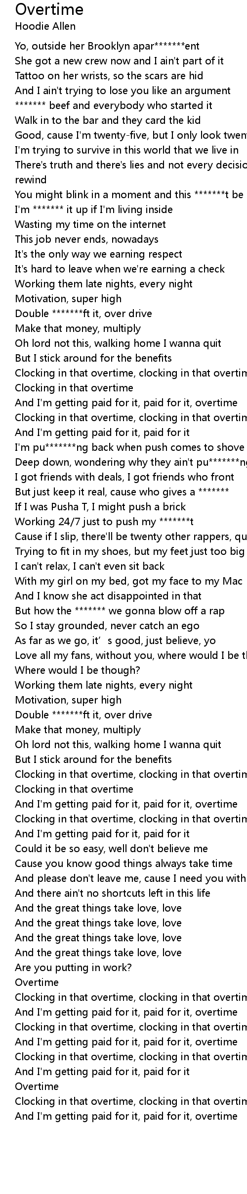 | [00:58.73] | And I'm getting paid for it, paid for it, overtime |