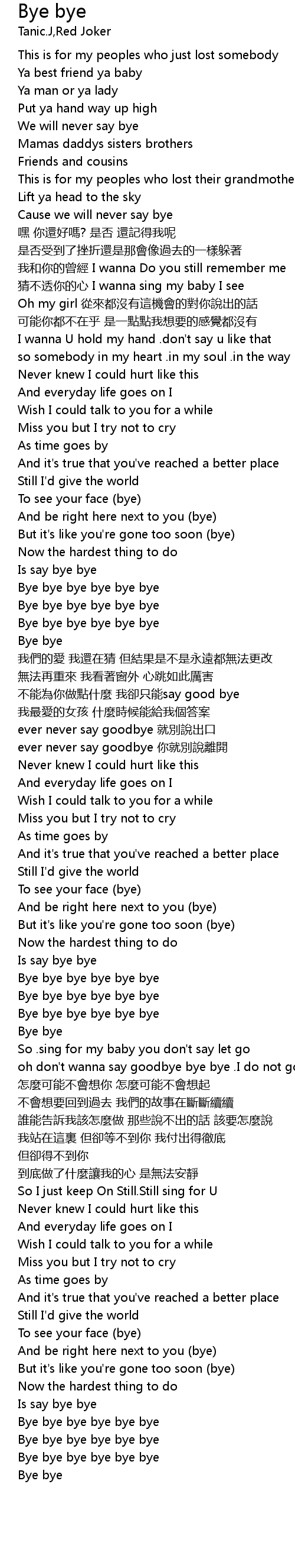 | [03:49.29] | But it's like you're gone too soon (bye) |