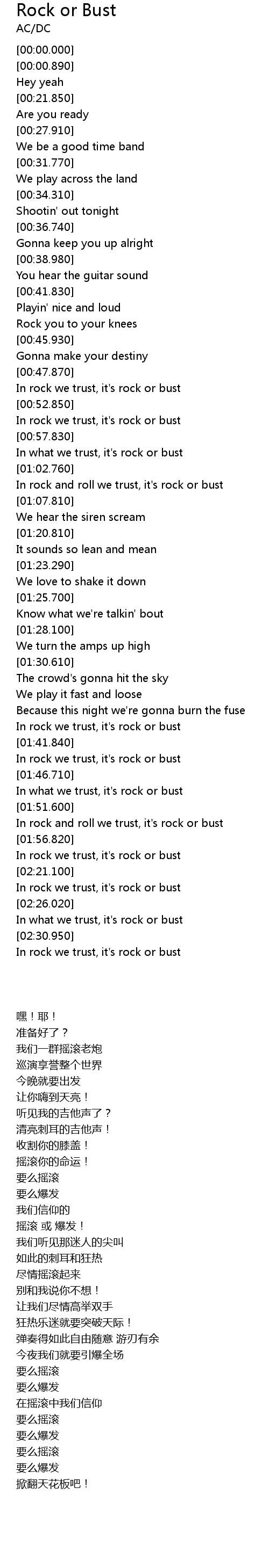 In rock and roll we trust, it's rock or bust |