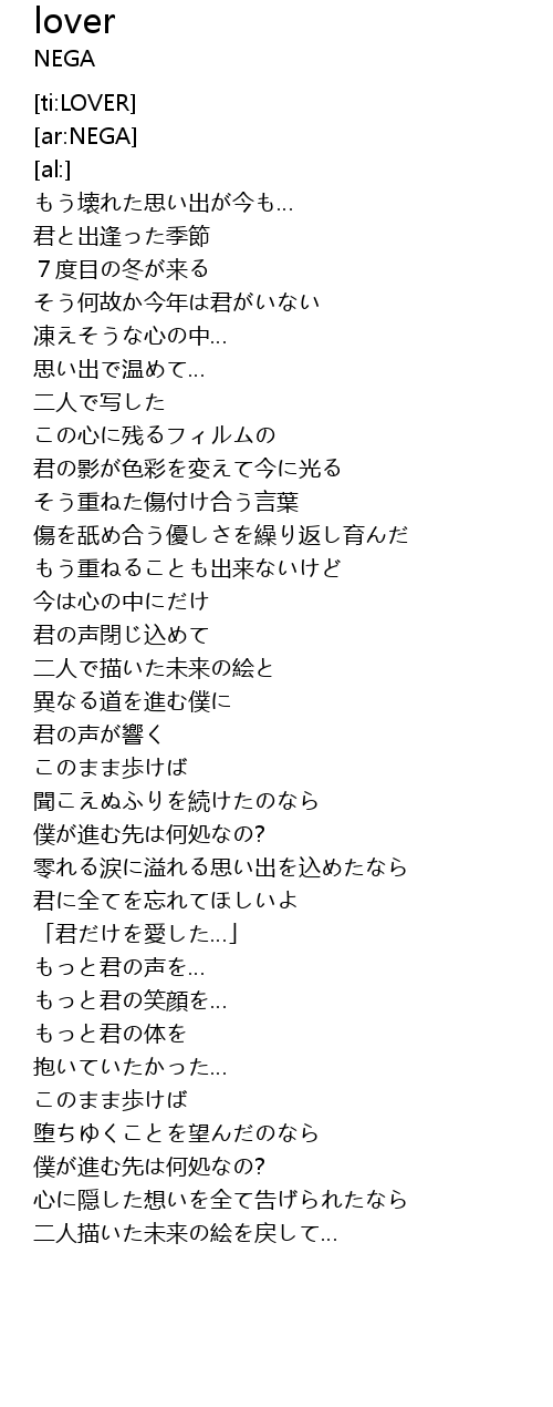 | [01:34.50] | そう重ねた傷付け合う言葉 |