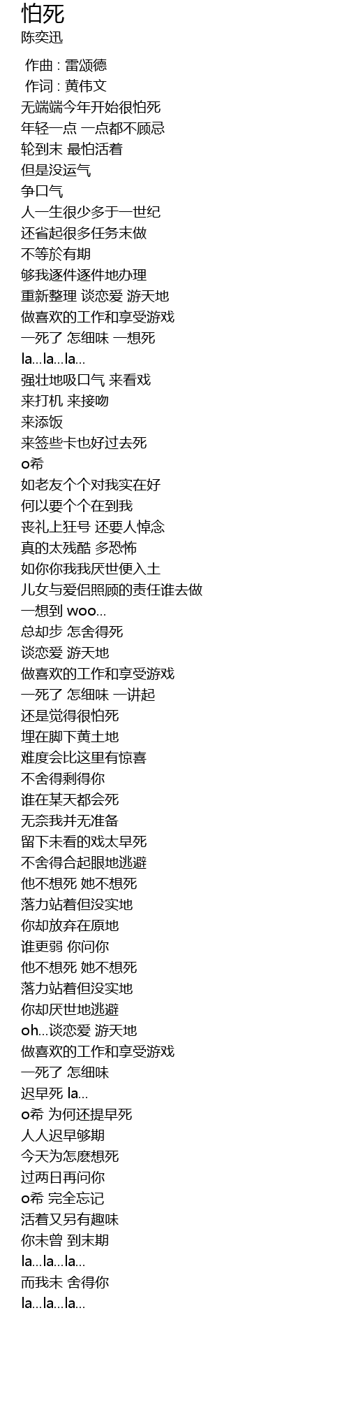 | [00:15.140] | 无端端今年开始很怕死 |