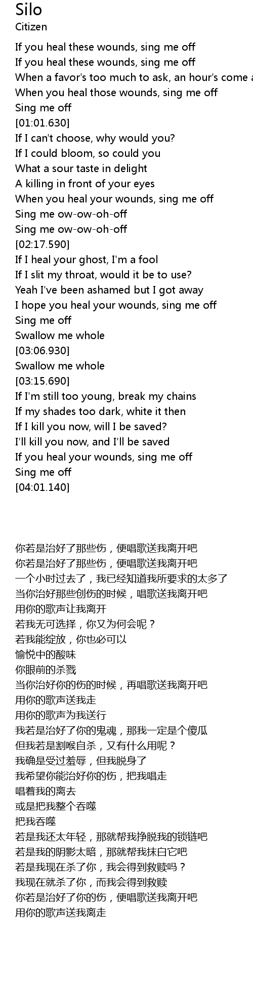 | [03:47.770] | If you heal your wounds, sing me off |