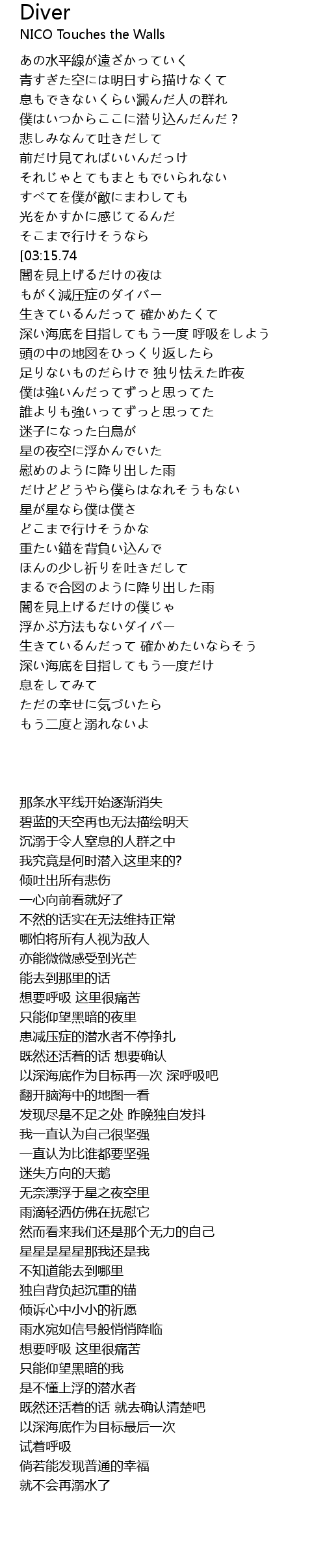 | [03:25.35] | 浮かぶ方法もないダイバー |