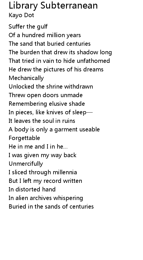 | Song | Library Subterranean |