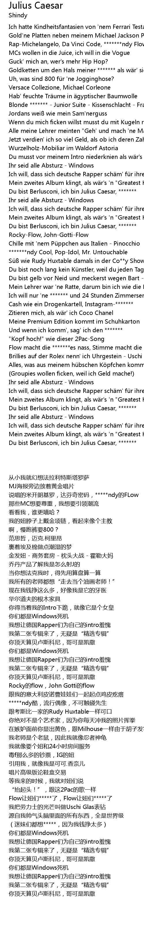 | [02:18.98] | Du bist Berlusconi, ich bin Julius Caesar, ******* |