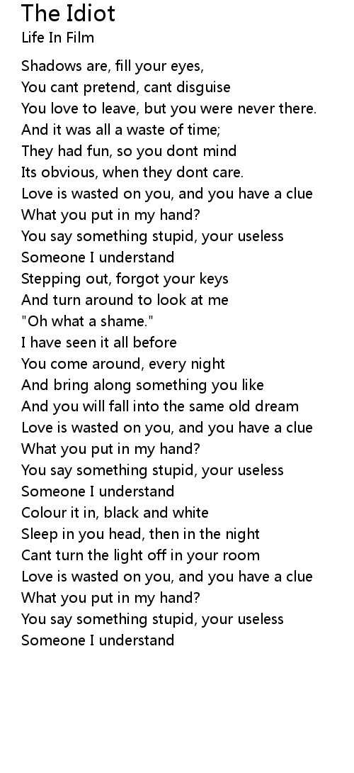 Love is wasted on you, and you have a clue |