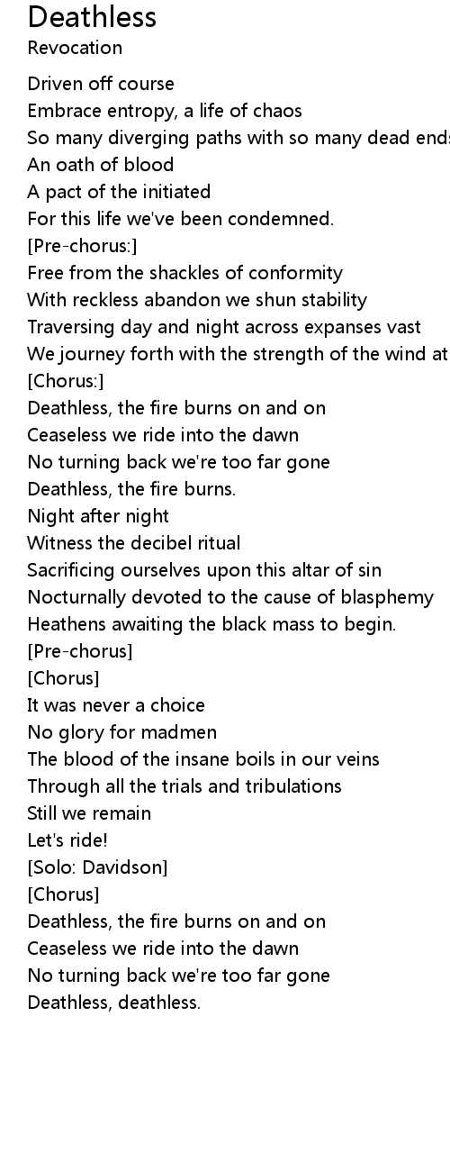 Deathless, the fire burns on and on |