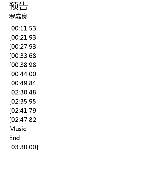 | [03:12.92][02:47.82][01:12.30] | 新的鼓舞 未来让信心预告 |