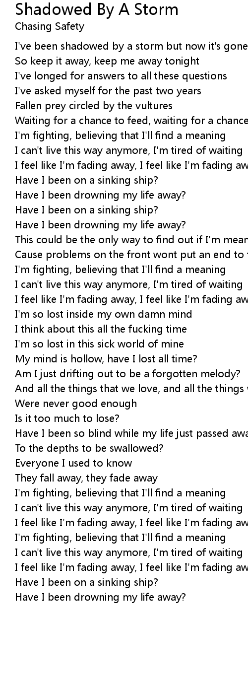 Waiting for a chance to feed, waiting for a chance to feed on me |
