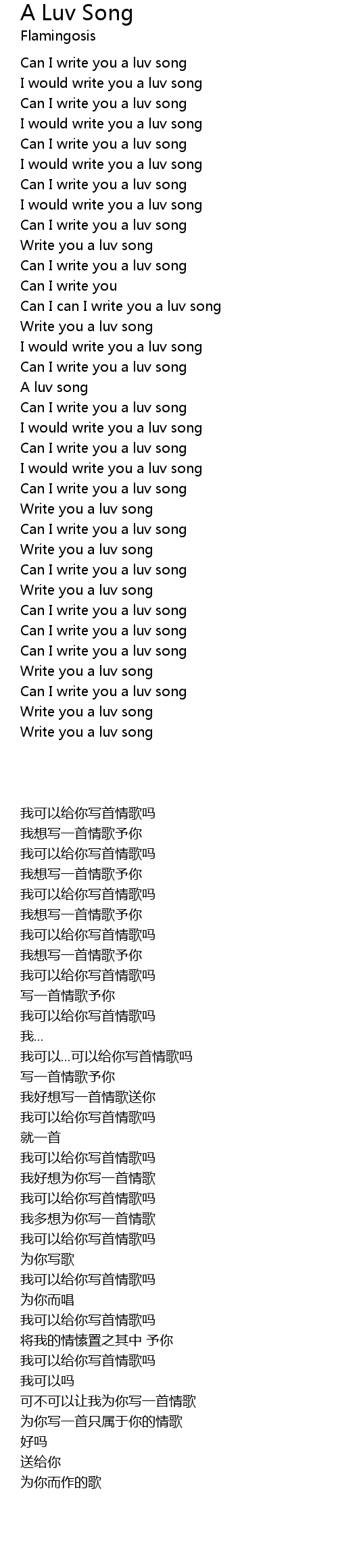 Can I write you a luv song |