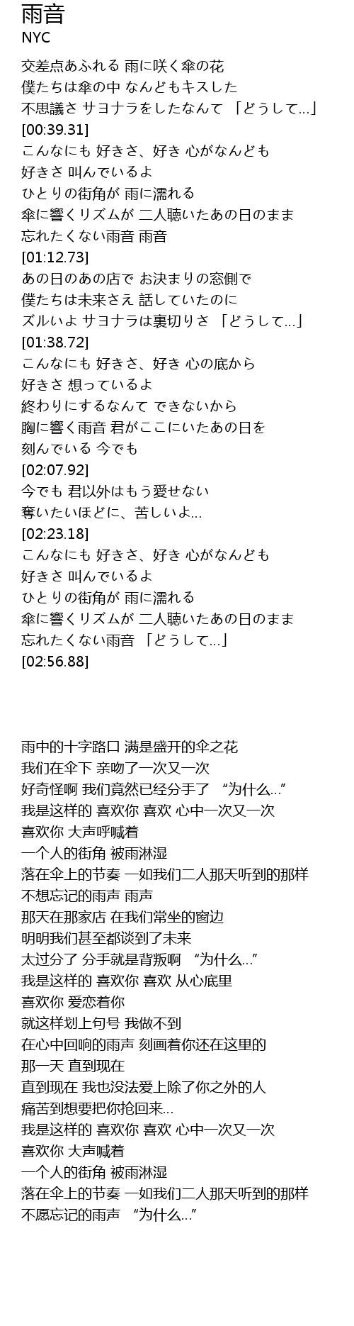 | [02:39.20] | 傘に響くリズムが 二人聴いたあの日のまま |