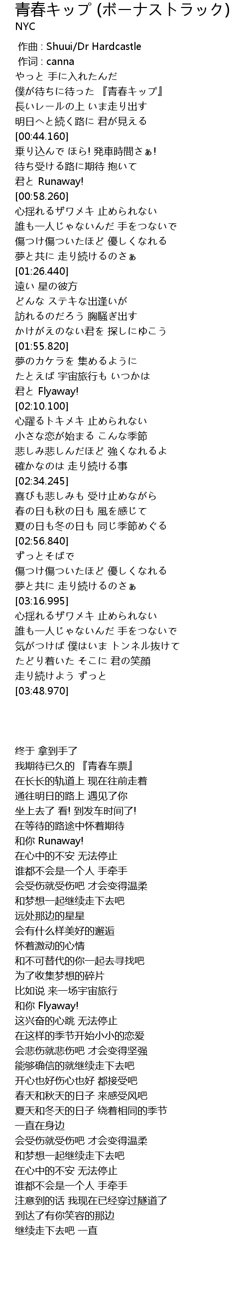 | [00:44.270] | 乗り込んで ほら! 発車時間さぁ! |