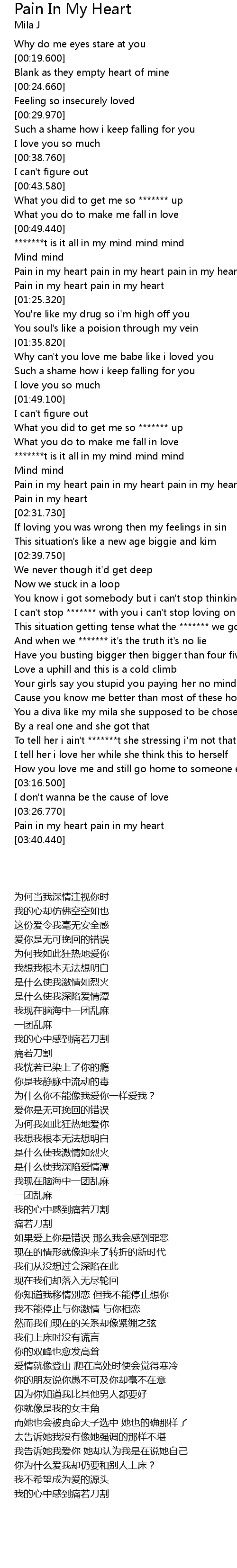 | [01:04.010] | Pain in my heart pain in my heart pain in my heart |