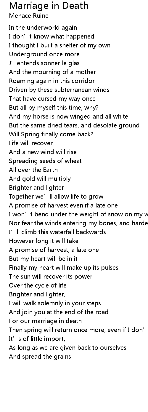 | Song | Marriage in Death |