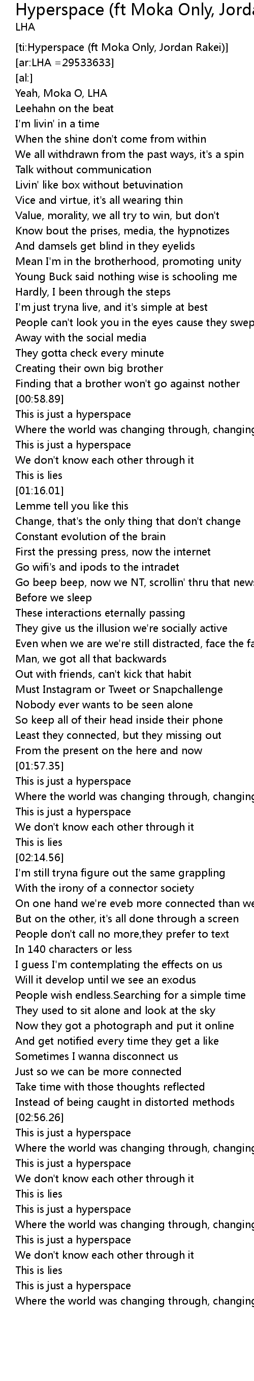| [ti:Hyperspace (ft Moka Only, Jordan Rakei)] | |