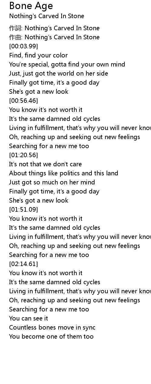 | [00:02.95] | 作詞: Nothing's Carved In Stone |