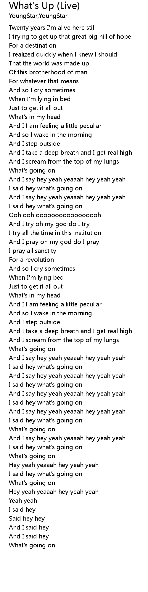 | [01:21.245] | I said hey what's going on |