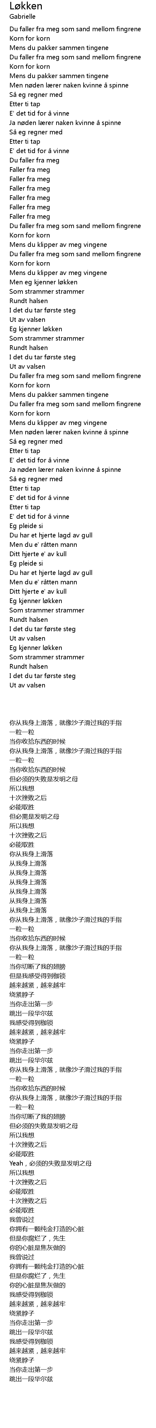 | [02:26.13] | Du faller fra meg som sand mellom fingrene |