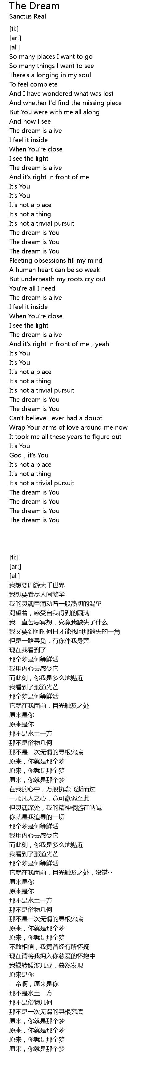 | [03:13.82] | The dream is You |