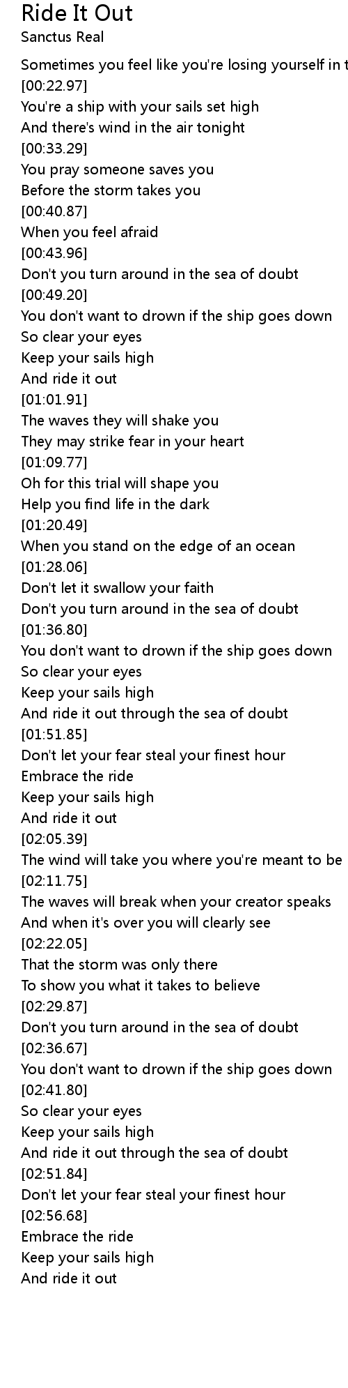 And ride it out through the sea of doubt |