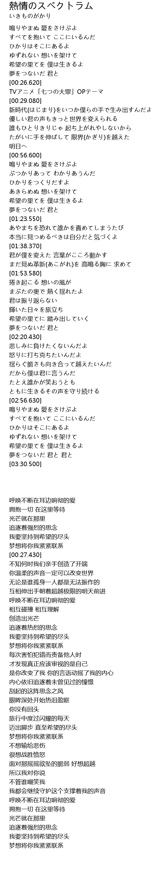 | [00:27.430] | TVアニメ「七つの大罪」OPテーマ |