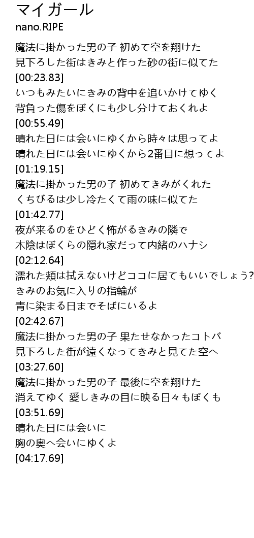 | [01:19.43] | 魔法に掛かった男の子 初めてきみがくれた |