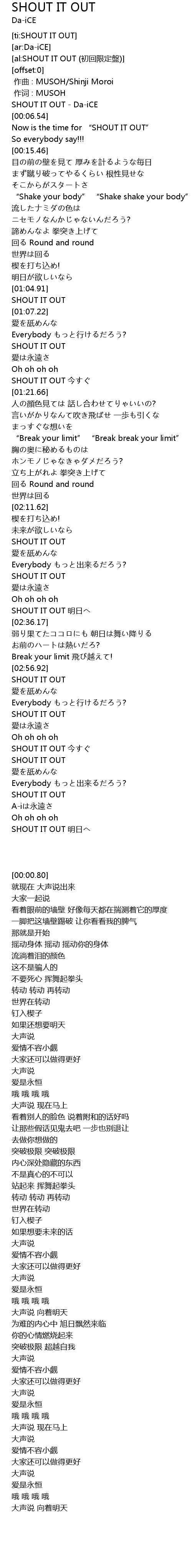| [00:00.80] | SHOUT IT OUT DaiCE |