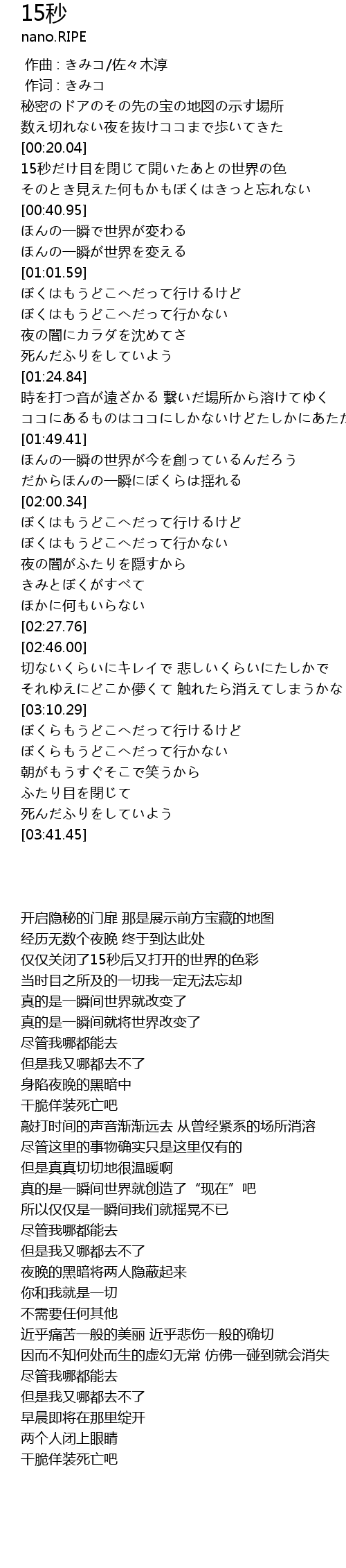 | [00:21.21] | 15 miao mu bi kai shi jie se |