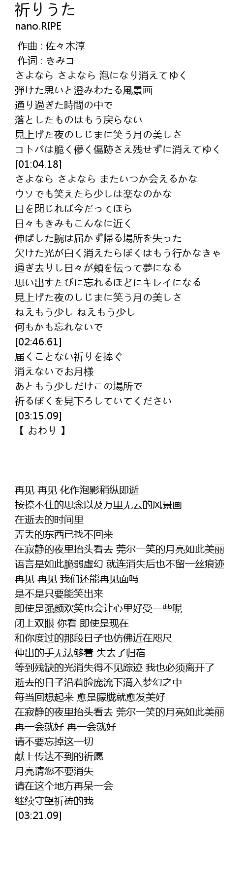 | [03:05.55] | 祈るぼくを見下ろしていてください |