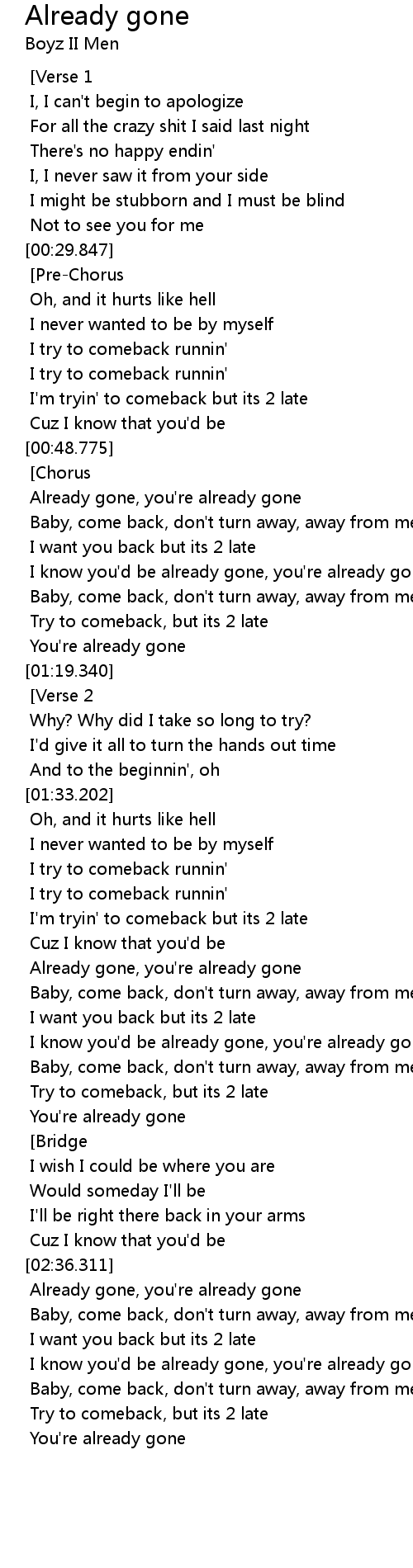 I know you'd be already gone, you're already gone |