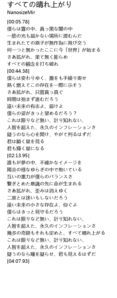 | [03:49.54] | 人智を超えた、永久のインフレーションさ |