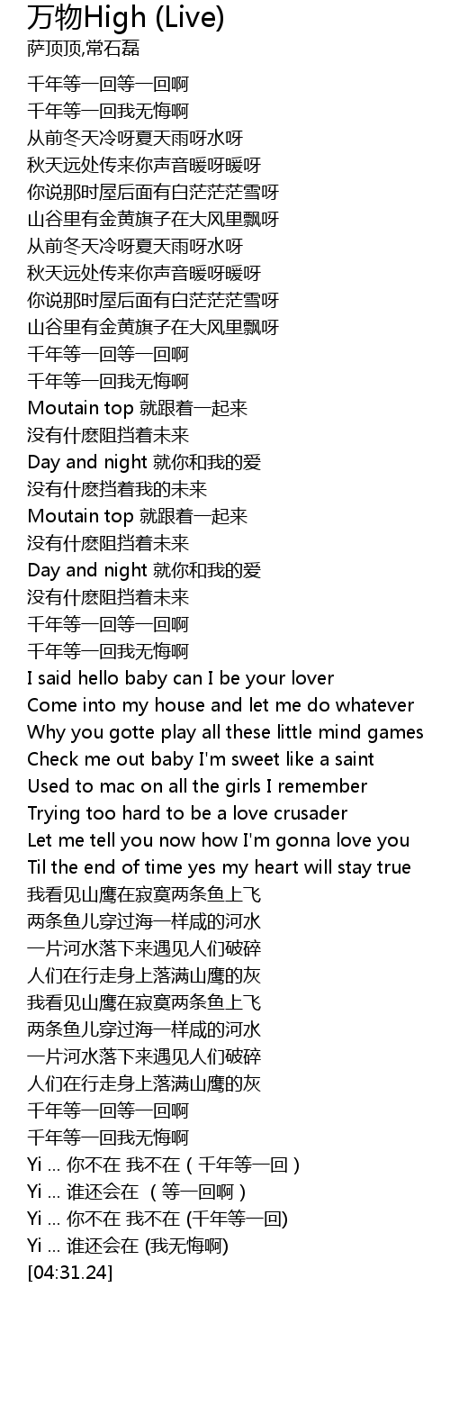 | [02:58.68] | Check me out baby I' m sweet like a saint |