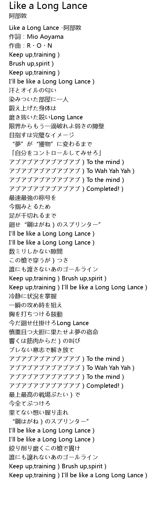 | [00:00.570] | Like a Long Lance -阿部敦 |
