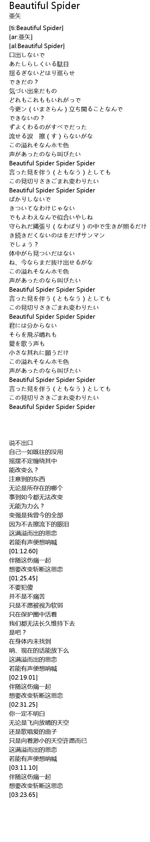 | [03:23.65] | Beautiful Spider Spider Spider |