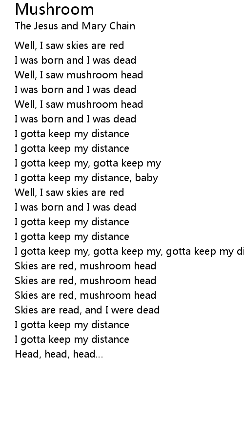 | [02:14.53] | Skies are red, mushroom head |