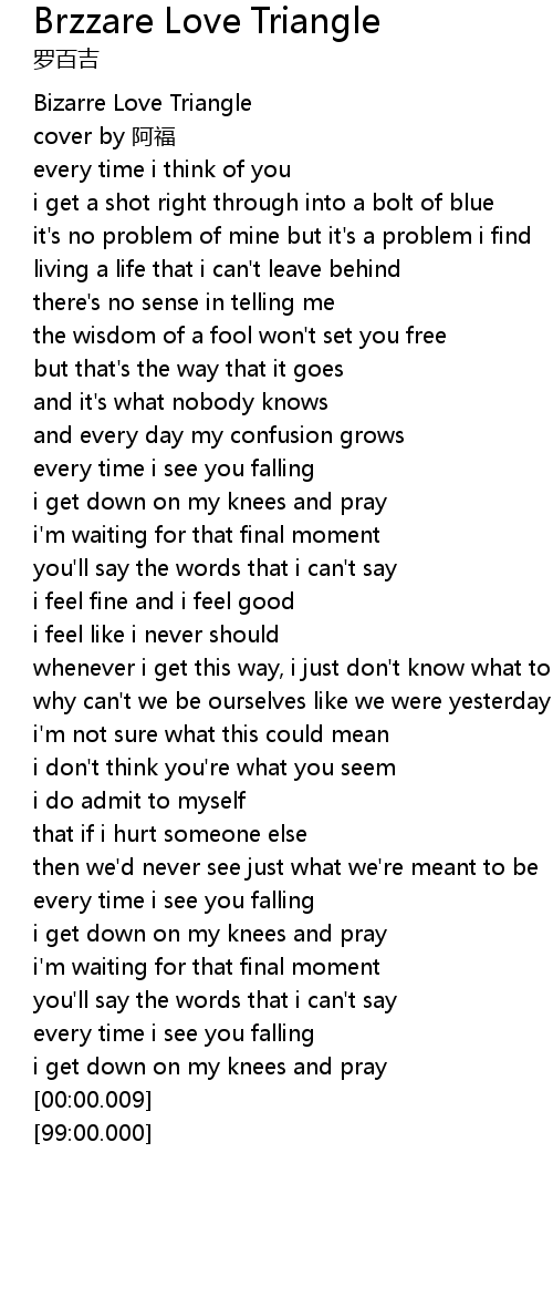 | [00:00.100] | Bizarre Love Triangle |