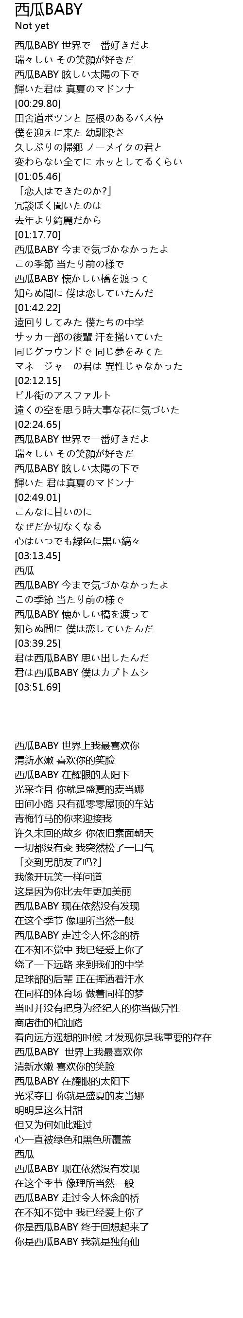 | [02:24.91] | 西瓜BABY 世界で一番好きだよ |