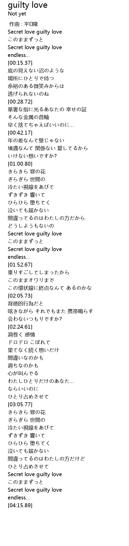 | [00:29.15] | 華奢な指に光るあなたの 幸せの証 |